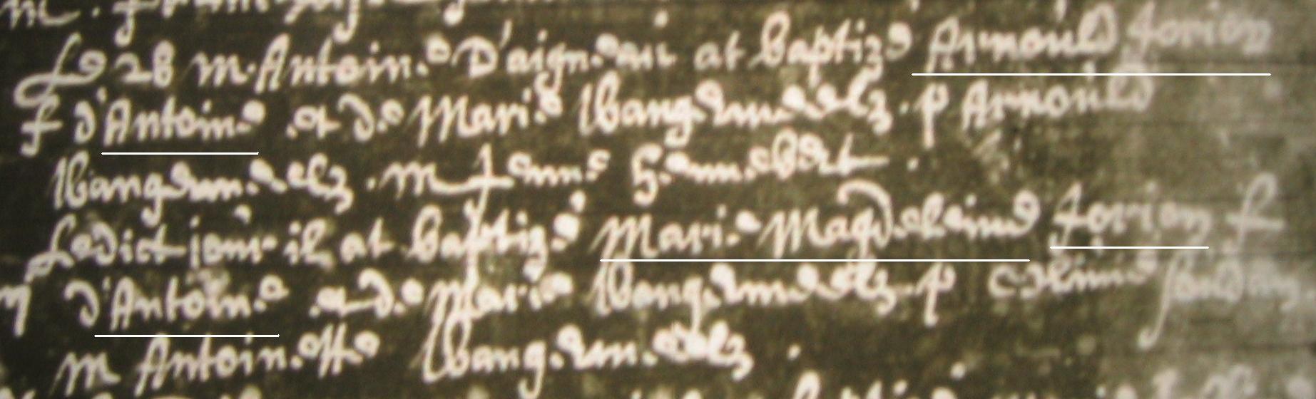 Note individuelle : Note: les archives paroissiales de cette époque sont trop laconiques pour être certain qu'il s'agit bel et bien de notre ancêtre. Ainsi, les actes de naissances n'indiquent ni l'âge ni l'origine des parents et les actes de mariages de donnent pas les noms des parents des mariés. Les actes de décès donnent l'âge du défunt, mais celui-ci peut être approximatif, et ne donnent pas le nom du conjoint.