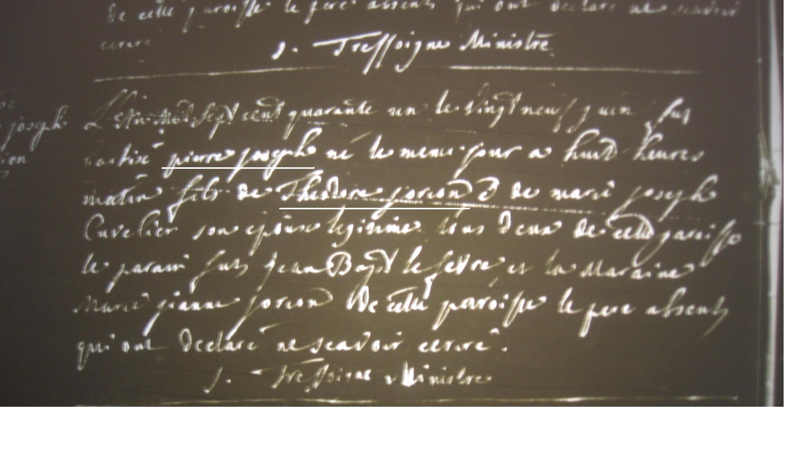 Acte de naissance de Pierre Joseph Jorion né le même jour à une heure du matin